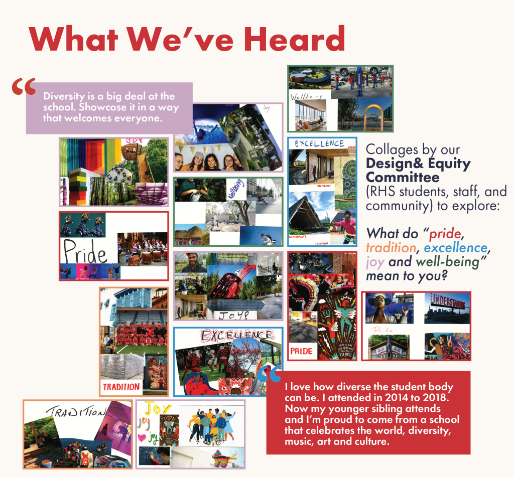 We’re in the early stages of redesigning Renton High School. Over the past school year (2023-2024), we heard from Renton students, staff, families, and community on how the new school can be a school that is safe, accessible, joyful – a place where everyone sees themselves reflected.